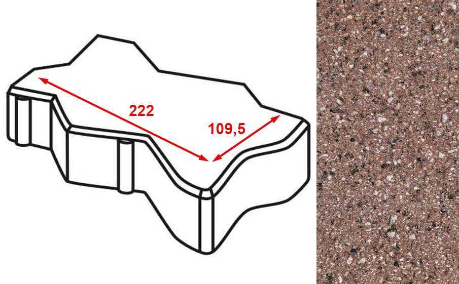 Плитка тротуарная Готика Granite FERRO, зигзаг/волна, Емельяновский 222х109,5х60 мм